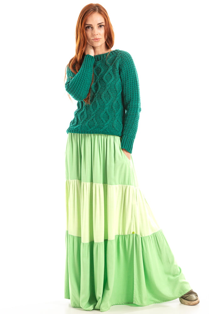 Apresentamos a nossa saia com babados, uma peça única que combina estilo e artesanato.